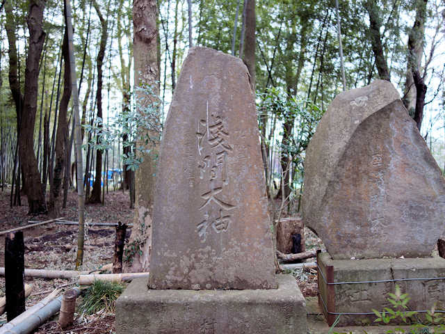 見つかったのは、お社の無い、浅間大神の石碑のみ