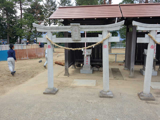 かわいい鳥居、もたせたポールが115cmだから2mほどの高さ、潜るには小さくかがんまなければならない