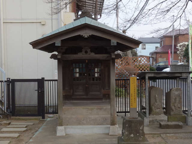 ご覧のように賽銭箱が引き戸の向こうに隠してある、摘まんだ百円玉を引き戸の隙間から投げ込んでのお詣りであった